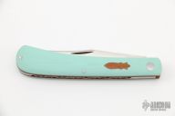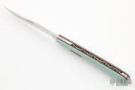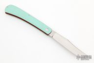 This slipjoint by Couch Knives features a hand rub satin finished blade with nail nick. The handle has tiffany G-10 covers over natural micarta liners/shield and a file worked backspring.  Includes a padded zippered case.  The spring is flush in all positions.  New from maker!