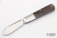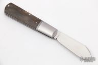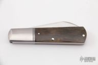 This Barlow by Tanner Couch features a hand rub satin finished blade with nail nick and false top edge. The handle has pinched and threaded stainless steel bolsters, mammoth ivory covers and stainless steel spring. Has half-stop, flush in all positions. Comes with a zippered case. New from maker!