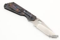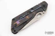This DDC SNG by Duane Dwyer features a drop point blade with thumbhole and dual thumbstuds. The handle has a milled G10 scale, anodized titanium frame with matching  reversible tip up clip. Has a couple light scratches on the frame, blade, and clip. Otherwise great condition.