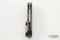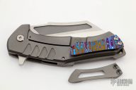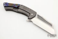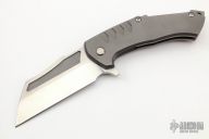 This Warnaught by Eric Luther features a two tone drop point blade. The handle is comprised of orange peel finish Titanium. Titanium hardware, pivot, and floating backspacer. Mokuti clip positioned for tip up carry. Comes with original clip, zipper case, and COA dated 03/16/2022. Nice action, detent, and blade seating. New from maker at Texas Blade show 2022.