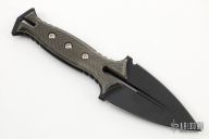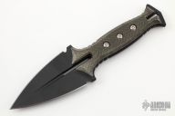 This Knife from Eric Luther is composed of cerakote finish CPM154 with milled bevels, .24" Blade Stock, 1.88"Blade Depth with full tang construction. Micarta scales. Comes with a black leather sheath. New from maker at the Texas Bladeshow 2022.
