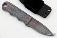 This Knife by John Gray features an anodized titanium blade with .064" blade stock and 1.075" blade depth, full tang construction. The handle has blue Terotuff micarta scales with red G-10 pins and a large lanyard hole. Comes with a kydex sheath with Velcro loop. New from maker at the 2022 Blade Show Texas.