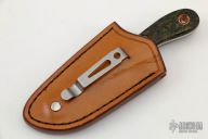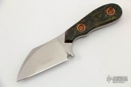 This Redux Micro Cleaver by Rainy Day Knives features a blasted wharncliffe blade with .150" blade stock and 1.026" blade depth, full tang construction. The handle has vintage rag micarta scales with brown canvas micarta liners. Includes leather front pocket sheath with clip and COA. New from maker at the 2022 Blade Show Texas.