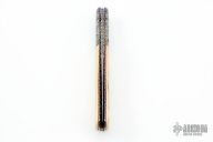 This Auto by Master Smith Don Hanson III features a Damascus blade with fileworked spine. The handle has dovetailed Mosaic Damascus bolsters, Damascus rocker bar, scrimshawed mammoth ivory scales by Tina '99, fileworked and anodized titanium liners, matching Damascus fileworked backspacer. Nice smooth action, nice lockup and blade seating. Comes with a zippered case. Excellent condition.
