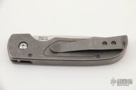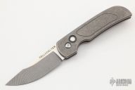 This Ridgeline Auto Prototype by Brian Fellhoelter features a two-tone blade with satin flats, tumbled milled bevel, and notched thumbrest. The handle has a stonewash finished titanium frame and a tip up titanium clip. Marked Prototype on blade. New from Maker at the Texas Blade Show 2022.
