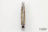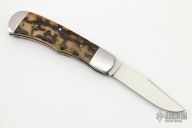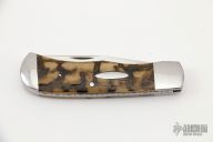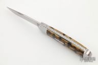 This slipjoint by Stanley Buzek features a hand rub satin finished blade with a nail nick. The handle has stainless steel bolsters with integral liners that have filework along the spines, mammoth ivory covers, stainless steel escutcheon, stainless steel spring. Has half-stop, flush in all positions. Comes with a zippered case. New from maker at the 2022 Blade Show Texas.