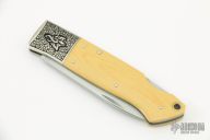 Considered a knife making legend, Jess Horn is primarily known for very high quality, top notch material custom folding knives. Jess Horn has been making knives since 1968 and, while occasionally making fixed blades, he is best known for his investor quality folders, working folders, and collectible period pieces. Jess's linerlock and slip joint folders are typically made with ATS-34 and 154CM stainless steel, and he uses a variety of natural handle materials, though favoring fossil Ivories and Stag for many of his knives. He was a longstanding voting member of the Knife Makers Guild. Jess passed away in 2016.