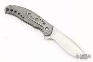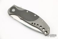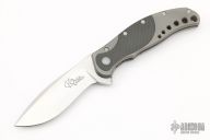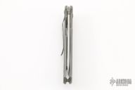This Boa Assisted Opening Flipper by Ken Onion features a hand rub satin finished recurve blade with notched thumbrest and flipper. The handle is comprised of a bead blasted titanium frame with carbon fiber inlay, black G-10 backspacer, bead blasted titanium clip is positioned for tip down carry. Has a few light scuffs, otherwise excellent condition. Comes with a zippered case.
