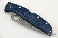 This Endura lock back folding knife by Spyderco features a VG-10 core San Mai Damascus blade, thumbhole and notched thumbrest. The handle has FRN scales with stainless steel backspacer and 4-way reversible stainless steel clip. Include original box and papers. Excellent condition.
