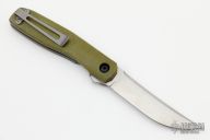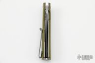 This Scar Flipper by Jason Clark features a hand rub satin finished blade with a notched flipper. The handle has crosscut micarta scales over titanium liners with a titanium tip pocket clip and a stainless steel backspacer.  Nice detent, lockup and blade seating. Comes with a leather slip sheath and COA. New from maker.