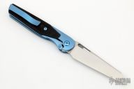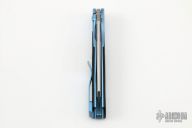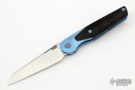 This Cortex by Brown Knives features a clip point stonewashed blade with notched thumbrest and flipper. The handle has a milled and anodized titanium frame with integral bolsters, inlaid black canvas micarta scales, titanium backspacer and tip up clip with hidden screws. Rides on bearings, nice detent, lockup and blade seating. Comes with original box and COA #027. Excellent condition.