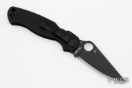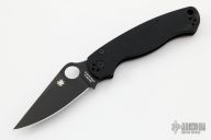 This Paramilitary 2 by Spyderco has a black s45vn clip point blade with thumb hole and notched thumb rest. Handle is black G10 with stainless steel liners and black stainless steel 4-way reversible clip. Comes with original box. Excellent condition.