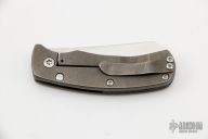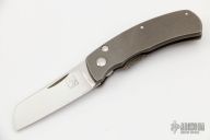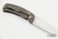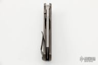 This Tozer by Brad Southard features a hand rub satin finish sheepsfoot style blade with nail nick. The handle is comprised of bead blast finish titanium and a carved carbon fiber backspacer. The machined titanium pocket clip is positioned for right hand, tip up carry. Comes with a Velcro pouch. Has scuffs and scratches, good condition.