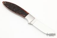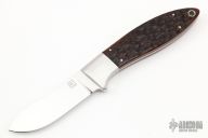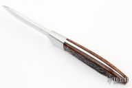 This Nessmuk by Bob Lum features a hand rub satin finished blade, .132" blade stock and .883" blade depth, full tapered tang construction. The handle has stainless steel bolsters and jigged bone handle with lanyard hole at the pommel. Black liners. Has some scratches on the bolsters and tip of the blade, otherwise great condition.