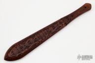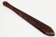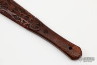 This Bone Breaker features full laser engraved wood construction. Led filled center. New from maker at the Texas Blade Show 2022.