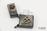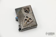 Custom Steel Flame lighter with Crusader Cross and Rampant Lion overlays. Comes with Steel Flame case. Excellent condition.