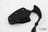 This push dagger from Bastinelli Creations is a minute backup tactical tool to be used in a real pinch, and it carries like it's not even there. Measuring in at 3.5" overall with a 1.875" Wharncliffe blade, it can perform utility cutting tasks easily and efficiently. It includes a molded Kydex sheath with belt clip and a padded zippered case.  New from maker.