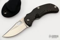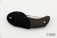 This framelock folder by Deviant Blades features a satin finished clip point blade with a thumbhole. The handle has carbon fiber scales and a bead blasted titanium liner, aluminum backspacer. Nice detent, blade seating and lockup. Comes with a kydex neck sheath. Excellent condition.