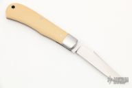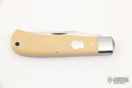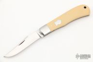 This Backpocket by Jim Dunlap features a hand rub satin finished blade with nail nick. The handle has pinched stainless steel bolsters, paper micarta covers, stainless steel liners and springs. Half-stop is flush in all positions. Includes padded zippered case.  New from maker!