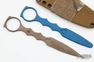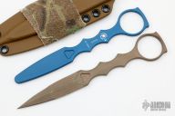 "The Spartan CQB tool is aptly named and specially designed for Close Quarters Battle. The CQB tool is a ring dagger with a kydex sheath. The sheath compliments the ring on the end the knife for quick removal. The sheath is designed to lash into MOLLE /PALS behind magazine or other front pouches on a vest or be carried on belt or inside the waist band. The design concept of the CQB tool originates with Greg Thompson, an instructor of close quarters fighting techniques (Hand To Hand) for the US Special Forces. Mr. Thompson is owner / founder of the H2H/Team ROC of the Fort Bragg based training group and developer of the Special Operations Combatives Program (SOCP). Mr. Thompson developed the new combatives program for US Army Special Operations Forces and this CQB tool is part of program gear. The CQB Tool or "transition tool" is used to compliment this program by providing a slim easily stowed knife with rapid acquisition for, "get the heck off me", grappling situations encountered in a CQB fight. The ring and slim profile design allows for the operator to quickly pull and utilize the dagger; breaking an attackers grasp and allowing the soldier to transition back to his primary weapon system without resheathing until safe to do so. Includes a kydex sheath and the original box. Has some light sheath marks, otherwise excellent condition. Comes with trainer blade.