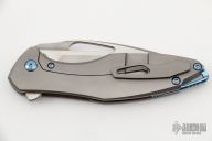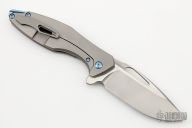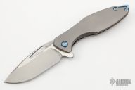 This Arius by Koenig knives features a two-tone blade with thumbhole and flipper. The handle has a nicely milled titanium frame with a titanium tip up clip, anodized titanium backspacer. Has ceramic bearings and a ceramic detent ball. Nice detent, lockup and blade seating. Comes with original box and COA March 15, 2022. Excellent condition.