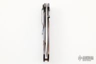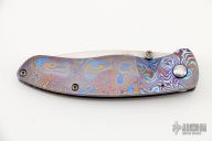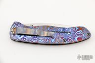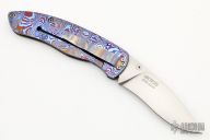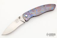 This Framelock by RW Clark features a hand rub satin finished recurve blade with a single thumbstud. The handle has mokuti scales, tip down heat colored stainless steel clip. Has a couple very light scratches on the handle, otherwise excellent condition. Comes with a zippered case.