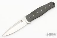 This Dr. Death Fixed Blade by Tom Mayo features a hand rub satin finished blade with a false top edge, .159" blade stock and .997" blade depth, full tang construction with carbon fiber scales. Excellent condition.
