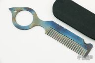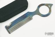This titanium neck comb features a tumbled and anodized finish with a cord cutter on the spine. Comes with a kydex neck sheath. Excellent condition. Dated 2011