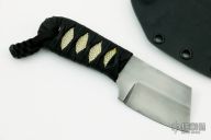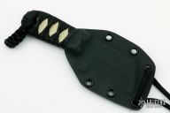 This Dao Neck Knife by Michael Burch features a hand rub satin finished blade with hamon, .174" blade stock and 1.442" blade depth. The handle has black cord wrap over white stingray skin. Comes with a kydex sheath. Excellent condition.