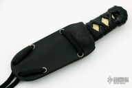 This Neck Knife by Windy Raven Knifeworks features a hand rub satin finished blade with nice hamon, .160" blade stock and .739" blade depth, hidden tang construction. The handle has black cord over white stingray skin. Comes with a kydex sheath. Excellent condition.