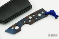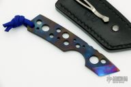 This Kiridashi by Vox Knives features an anodized titanium chisel ground blade with notched thumbrest, .145" blade stock and .879" blade depth, integral construction with lanyard hole at the butt. Comes with kydex sheath and a black leather sheath by Lifter's Leather. Excellent condition.