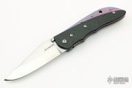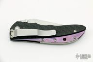 This knife by Allen Elishewitz features a high satin finished blade with dual thumbstuds. The handle has carbon fiber scales, anodized titanium liners and tip down clip. Nice detent, lockup and blade seating. Has a few light scratches, otherwise excellent condition.