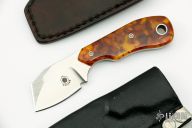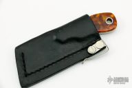 This Wee Razelcliffe from Jonathan Graham features a satin finished blade with sharpened front edge, full tang construction with .115" blade stock and 1.009" blade depth. The scales are faux tortoise shell and are fastened using two mosaic pins. Comes with 2 black leather sheaths. Excellent condition.