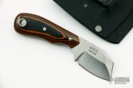 This Wee Razelcliffe from Jonathan Graham features a satin finished blade with sharpened front edge, notched thumbrest, full tang construction with .103" blade stock and 1.039" blade depth. The scales are orange/black G-10 and are fastened using two mosaic pins. Comes with a kydex sheath. Excellent condition.