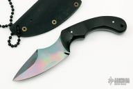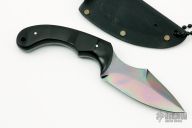 This Felony Stop is a Laci Szabo design produced by Fred Perrin, it has black paper micarta scales with nickel silver pins. The blade is gun blued and double edged, .147" blade stock and 1.330" blade depth, full tang construction. It includes a kydex sheath. Has a few light scratches, otherwise excellent condition.