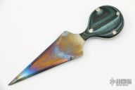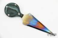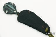 This push dagger by Fred Perrin features an anodized titanium double edged blade, .087" blade stock and 1.187" blade depth, full tang construction. The handle has black/green/white G-10 scales. Comes with a kydex neck sheath. Excellent condition.