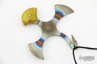 This Phoenix necklace by Elsa Fantino is made from anodized titanium with yellow G-10 scales with brass pins. This can be removed quickly and used as a knuckle. Excellent condition.