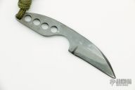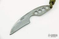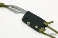 This Neck Knife from Fred Perrin features a chisel ground blade with hamon and notched thumbrest, .102" blade stock and .756" blade depth,. The handle has a lanyard hole in pommel. Includes kydex sheath. Excellent condition.