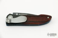 The 690 Elishewitz is a discontinued linerlock folder by Benchmade. It features a clip point black partially serrated blade with carbon fiber dovetailed bolsters, rosewood scales, and anodized titanium liners, tip down stainless steel clip. Comes with original box. Excellent condition.