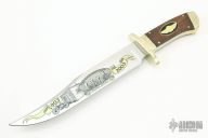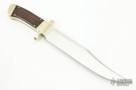 This Commemorative Harley-Davidson Motorcycles Bowie features a mirror polished clip point blade with false top edge, .235" blade stock and 1.63" blade depth, hidden tang construction. The handle has a brass guard, and butt, with wood grip and inlay. Comes with display box. Excellent condition.