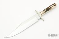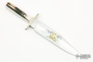 This Commemorative Harley-Davidson Motorcycles Custom Bowie by Buck Knives features a mirror polished clip point blade with false top edge, .176" blade stock and 1.41" blade depth, full tang construction. The handle has a nickel silver guard, and butt, with stag scales. Comes with display box. Excellent condition. #02