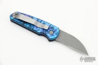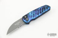 This Pro-Tech Runt features a California legal wharcliffe blade with partial serrations. The handle features a anodized aluminum frame with a tip down steel pocket clip. Excellent Condition.