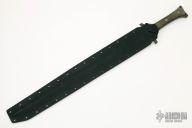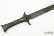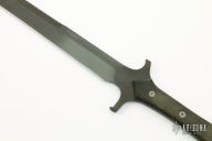 This Sword by Robert Newton is a Laci Szabo design, it features a black double edged blade with .242" blade stock and 1.531" blade depth, full tang construction with black canvas micarta scales. Comes with a kydex sheath. Excellent condition.