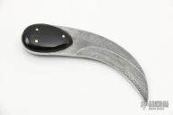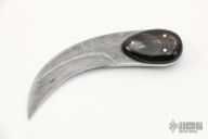 This knife features a Damascus hawkbill blade with a full tang construction. The handle features buffalo Horn scales. Excellent Condition.