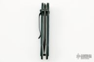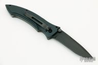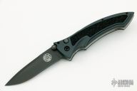 This knife by Masters of Defense features a black blade with false top edge and dual thumbstuds. The handle is black polymer with a tip down black stainless clip, safety on the spine and push button. Has a couple light scuffs, otherwise excellent condition.