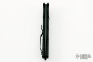 This Tactical Response TR-4.F3 Operator Series features a black anodized aluminum frame with feather texture, which provides good traction and looks great. The blade is black finished 154-CM stainless steel with a plain cutting edge. The TR-4.3 is a knife that won't let you down. It fires hard, locks up like a rock, and feels great in hand. The slim design sits comfortably for tip-up pocket carry. Tritium is inset into the firing button, adding a unique and awesome flare to the piece. New from Maker!