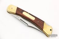 This Puma Plainsman lockback has a brass frame with wood scales. The blade is satin finished with nail nick. Excellent condition. Comes with original box. #96083. made in 1968.