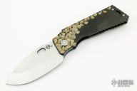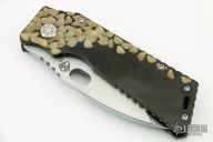 The TFF-H by Medford Knife and Tool features a large satin finish drop point blade. The handle is composed of bronze anodized textured titanium frame with a matching anodize finish tip up clip. Comes with original box and papers. Excellent condition.
