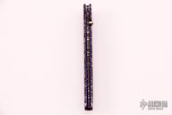 This sole-authorship linerlock folder features a mosaic Damascus blade with amythest inlaid single thumbstud. The handle has mosaic Damascus scales, anodized and fileworked titanium liners, and a Damascus backspacer. Nice detent, lockup and blade seating. Excellent condition. Comes with a zippered case and makers card. Comes with two Damascus tiles of Wile E Coyote and the Roadrunner.
