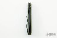 This SNG framelock folder by Mick Strider features a black blade and a dimple pattern green G-10 and flamed titanium frame and tip up titanium clip. Includes a "Lock Bar Stabilizer" for maximum reverse lock retention. Nice detent, lockup and blade seating. Excellent Condition.